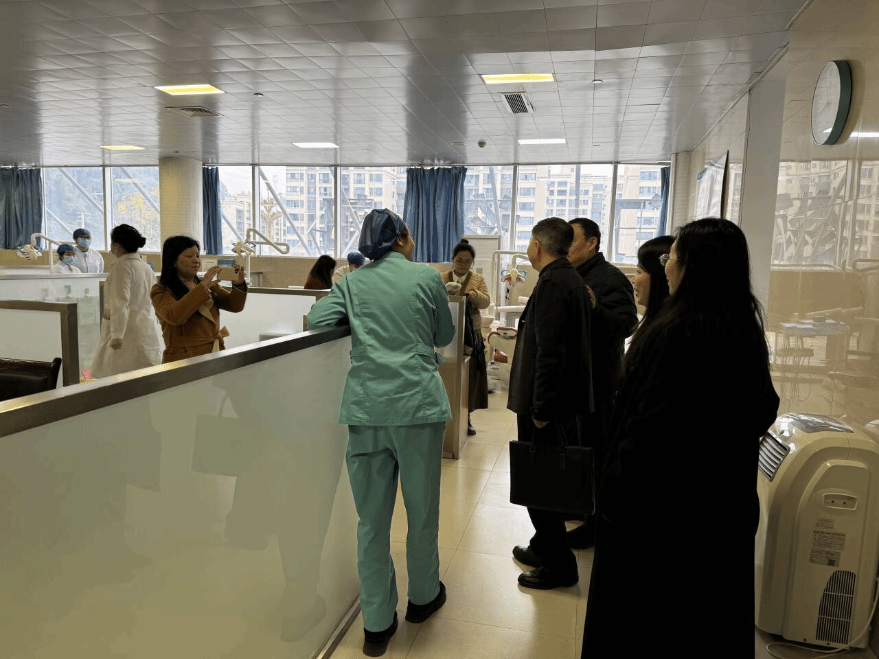 会后,学院团队参观了犍为县人民医院门诊大楼,对医院的硬件设施、医疗、教学环境进行了全面了解。