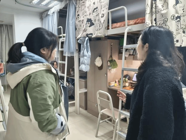 伍老师逐一走访了同学们寝室,对寝室卫生及用电安全等进行了检查。并与同学们进行深入交流,详细了解大家学习进展、生活情况,并叮嘱同学们严格遵守医院规章制度和校规校纪,增强安全意识,确保自身人身与财产安全。同学们也积极分享了学习期间的收获与体会。