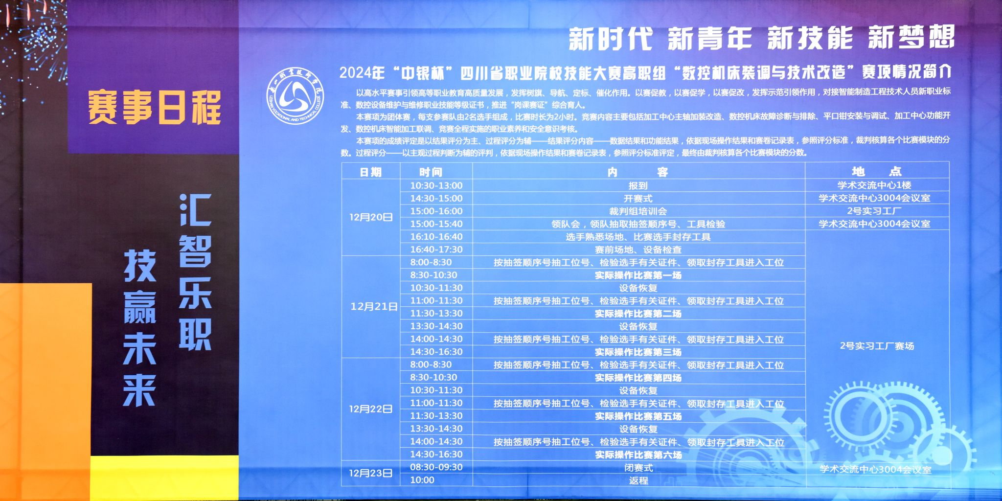 12月20日-22日,由四川省教育厅主办的2024年“中银杯”四川省职业院校技能大赛数控机床装调与技术改造赛项在beat365亚洲版官网举行,来自全省15所高职院校的42支参赛队的84名选手同台竞技。