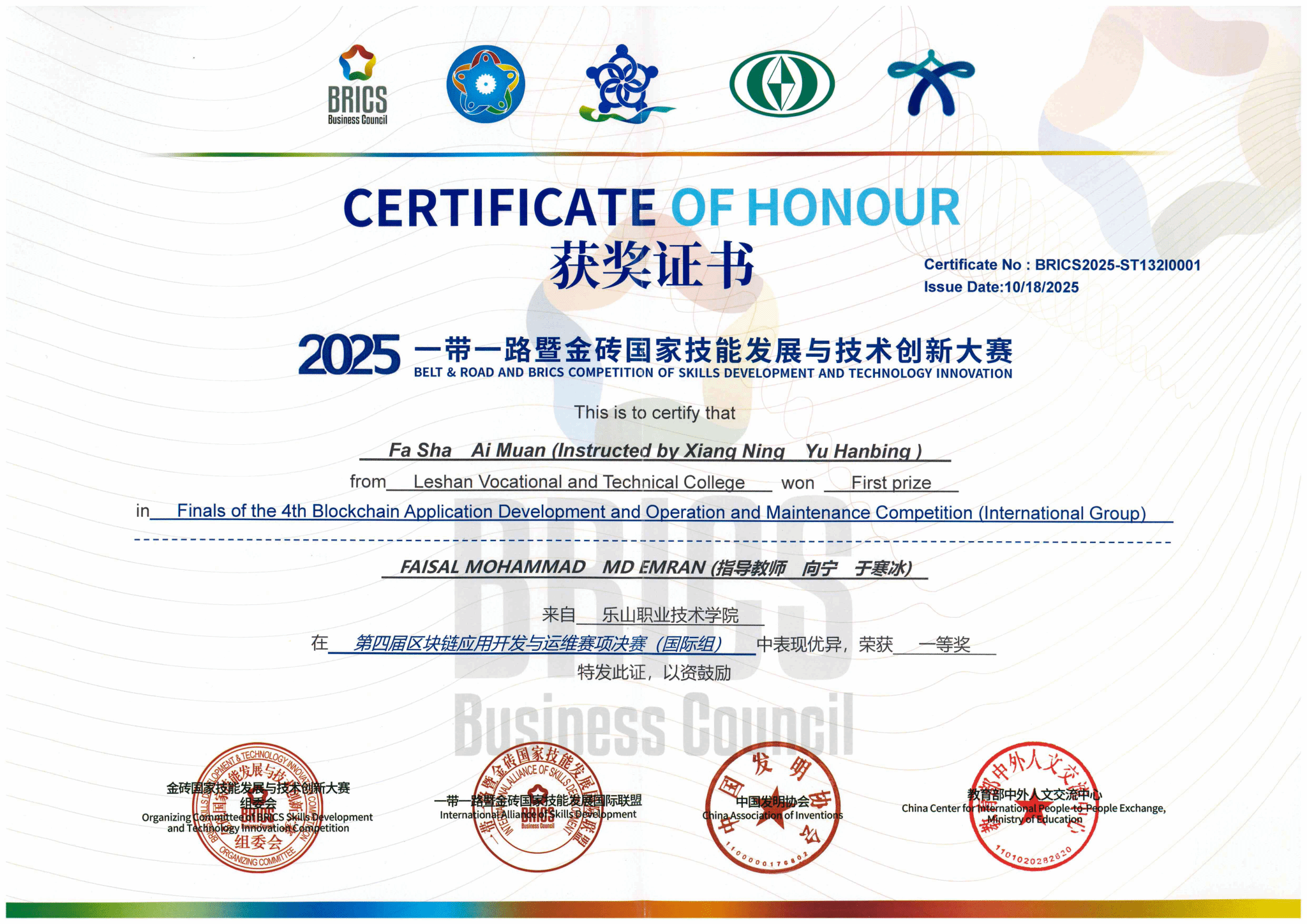 祝贺!beat365亚洲版官网学生参加2025“一带一路”暨金砖国家技能发展与技术创新大赛之第四届区块链应用开发与运维赛项获佳绩