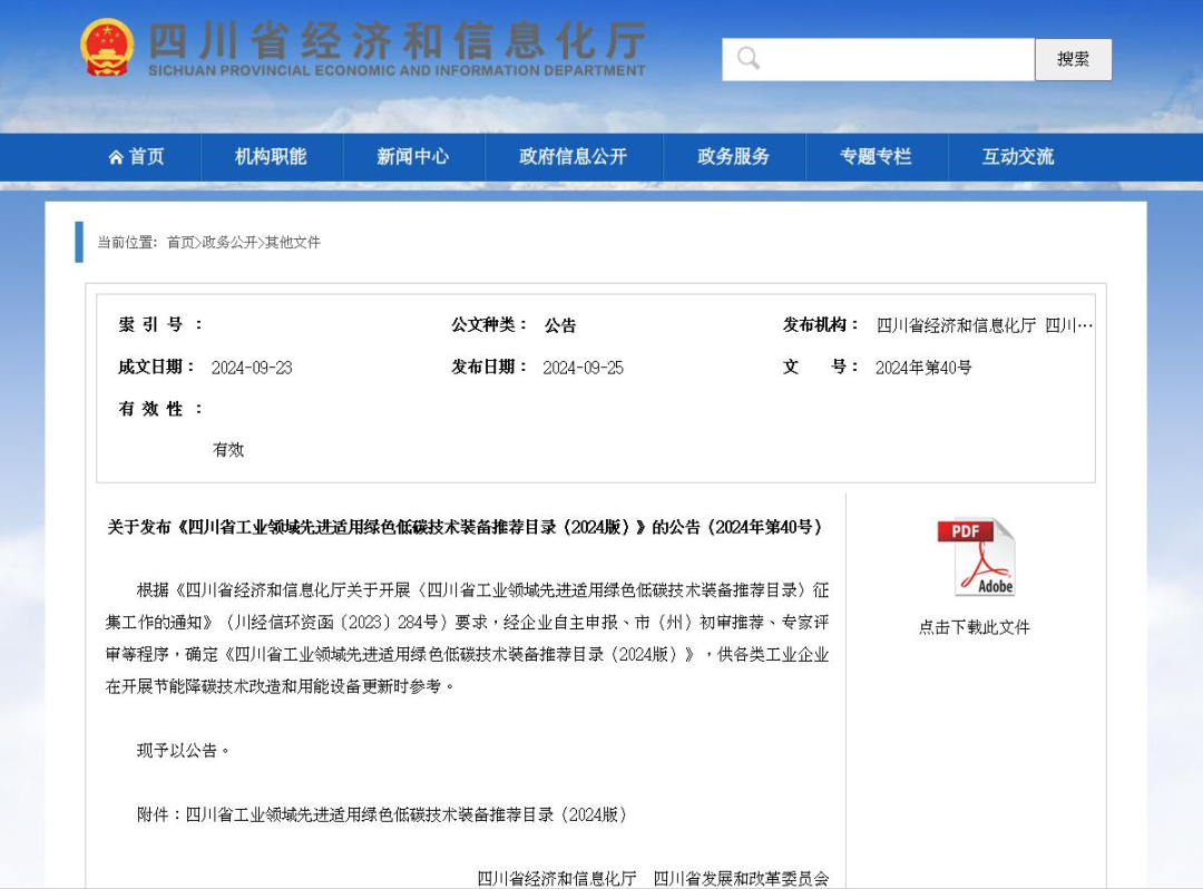 乐山高新区2家企业入选四川省工业领域先进适用绿色低碳技术装备推荐目录(2024版)名单