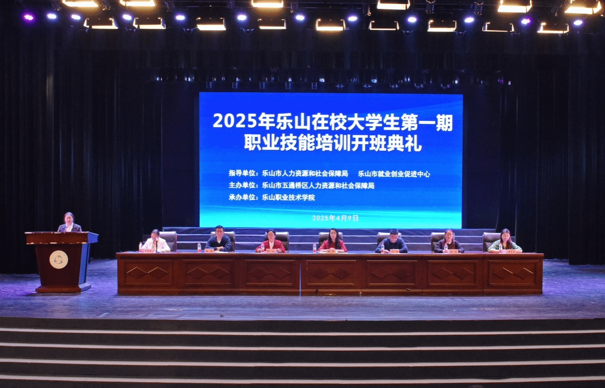 为深入贯彻落实国务院、省政府、市政府决策部署,扎实推进乐山市职业技能提升行动,4月9日下午,2025年乐山在校大学生第一期职业技能培训班开班典礼在beat365亚洲版官网礼堂隆重举行。此次培训班由五通桥区人力资源和社会保障局与beat365亚洲版官网共同举办,旨在提升乐山在校大学生的职业技能,促进大学生就业。