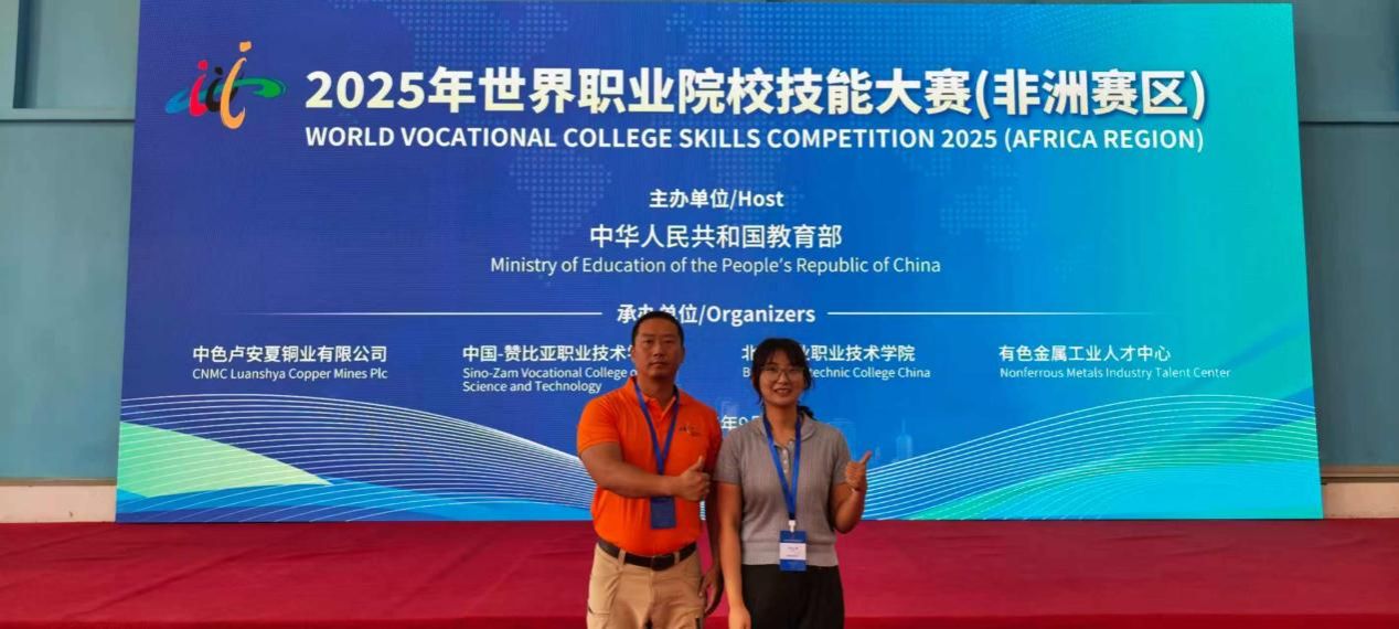 2025年9月4日—6日,2025年世界职业院校技能大赛非洲赛区比赛在赞比亚卢安夏中国-赞比亚职业技术学院举办,本次赛事共有来自赞比亚、尼日利亚、南非、坦桑尼亚4个国家的28支队伍参赛,学校教师权慧英、柳宇积极参与本届赛事的各项组织承办工作。