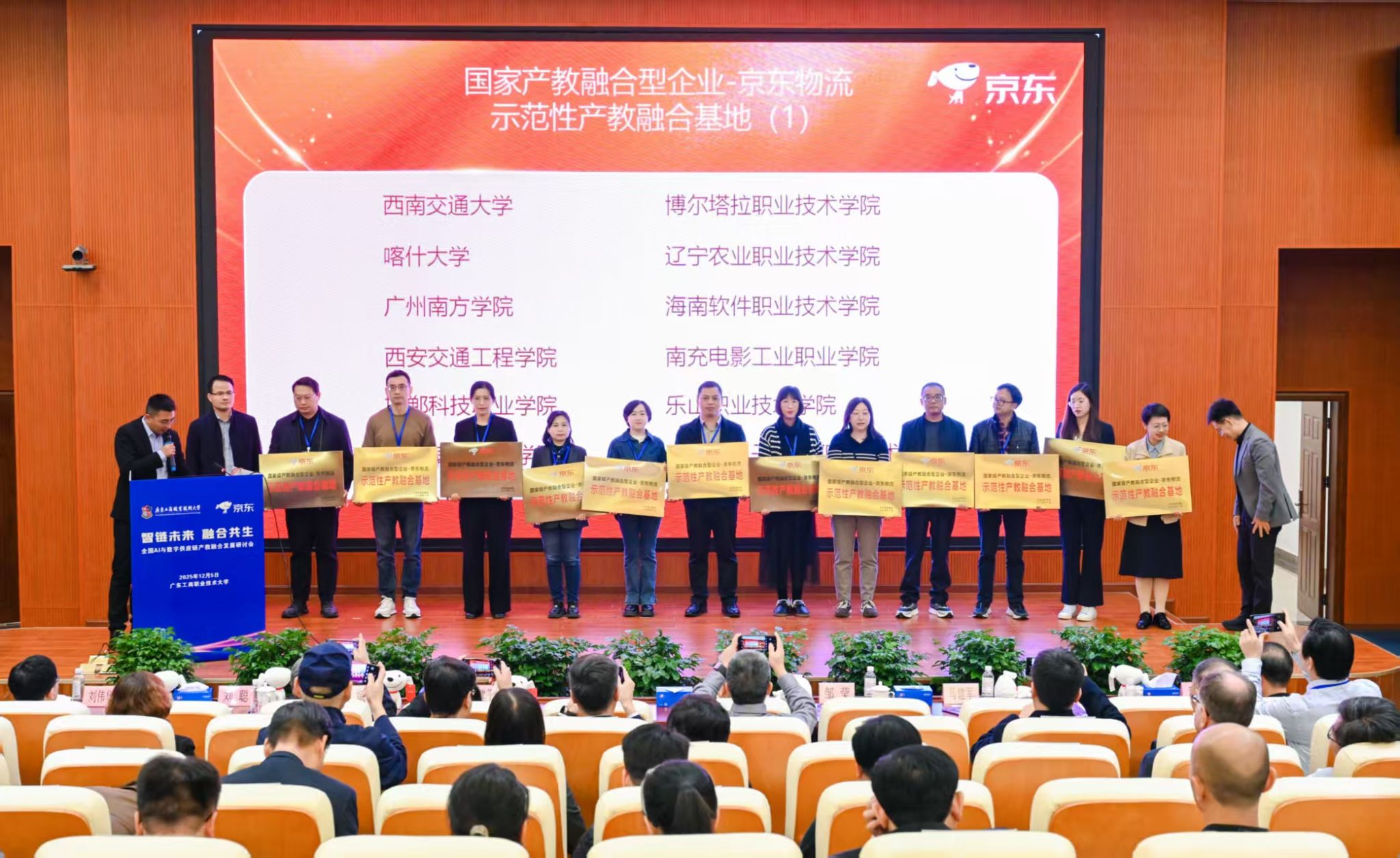 12月5日,由全国智能供应链产教融合共同体、京东集团联合主办的“AI与数字供应链产教融合发展研讨会”在广东工商职业技术大学顺利举行。beat365亚洲版官网京东数字商务产业学院被授予国家级产教融合型企业-京东物流“示范性产教融合基地”。