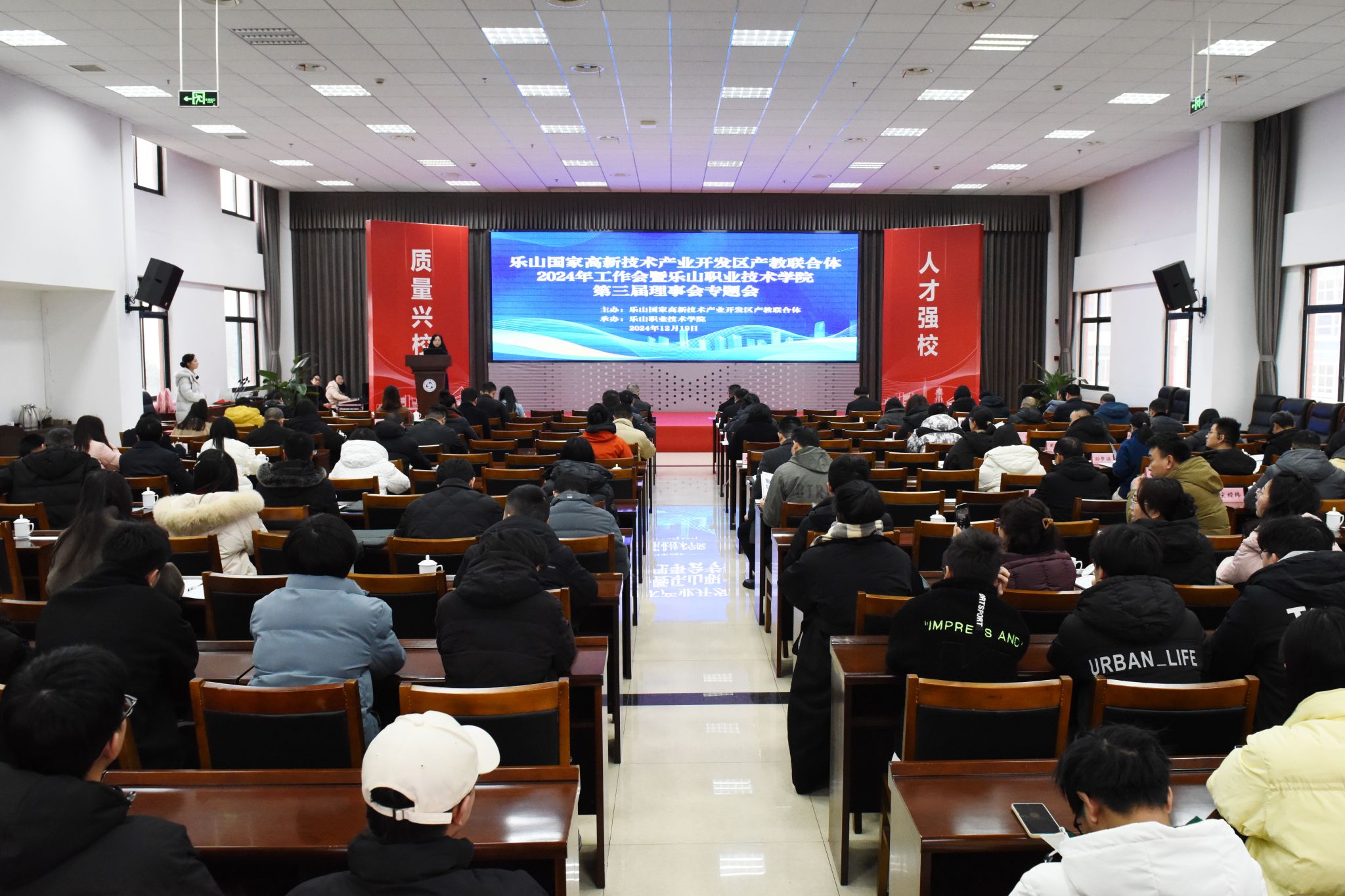 12月19日上午,乐山国家高新技术产业开发区产教联合体2024年工作会在beat365亚洲版官网学术交流中心召开。乐山市教育局党组成员、机关党委书记徐波,beat365亚洲版官网校长刘忠、副校长周芹,乐山高新技术产业开发区党工委委员、管委会副主任周睿出席,来自市级相关部门、行业企业、职业院校的50余名代表和学校师生代表参加会议。