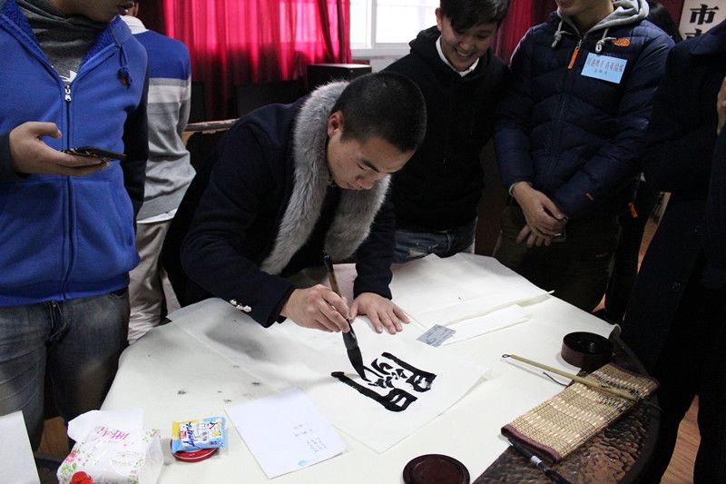 为在场师生分别介绍了乐山大佛和峨眉山景区。最后,具有艺术气息的书法展示更是把全场气氛推至最顶端。香港同学对书法非常感兴趣,要求表演同学用书法写下自己的名字并作为礼品赠送给他们。双方学生也互相赠送了礼物,此次交流会在欢乐的氛围中结束。