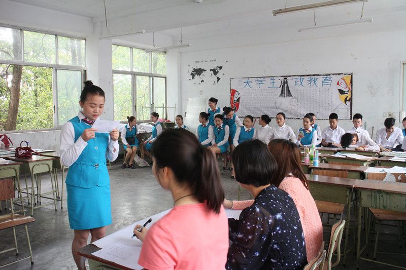 为了培养和提高学生的服务礼仪水平和能力,展示航空服务专业学生的风采。旅游系于5月5日在二楼航空14-1班举办航空服务技能大赛初赛活动,担任技能初赛的评委有:14级辅导员刘梦媛、15级辅导员鲜梦玲以及东方领航老师徐思源。参加技能初赛的人员有14级和15级航空服务专业的部分学生。