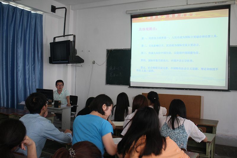 为了提高同学们的社会主义核心价值观,实现富国强国之梦。旅游艺术系于5月17日中午十二点四十分在综合二多媒体教室开展了入党积极分子知识讲座,由系党支书记李忠东主讲。