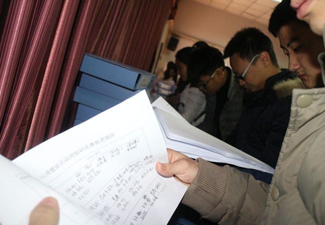 在年终总结大会前从各系抽选出来的人员检查了各系团委学生会纸质报告总结并进行评分,在实训室中各部门工作人员互相交流沟通,对每个系的资料进行了解翻看,全场看起来热闹非凡却也井然有序,大家认真的看着资料对自己和系部的过去在心中有了深刻的认识,我相信在以后的工作中大家一定会更好地为学院做贡献。