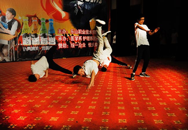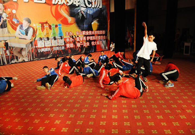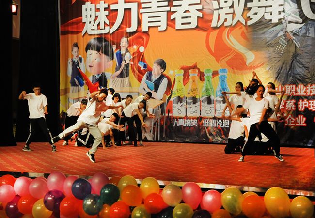 大礼堂灯光璀璨,座无虚席,比赛现场气氛空前热烈。来自全校10个系部同学同台竞技。率先登场的是护理系的串烧《shots》,以其动感的旋律、轻快的节奏,迅速引爆全场。财经系的《律动》奔放洒脱,以其强大的阵容、专业的表演,震撼全场,营造出热烈的气氛。紧接着其他系的节目也轮番上场《青春起跑线》、《NO NO NO》,带给大家视觉享受。旅游系学生表演的《hiphop中国风》21名学生身着“中国”“青春”字样的运动装,伴着节奏尽情舞蹈,诠释出最富活力的青春姿态,同学们展示出高难度的技巧动作瞬间吸引观众的眼球。整个舞蹈编排创新、内容丰富、设计精巧,表演到位,将现代舞与传统武术太极拳相结合,有快有慢、有静有动,节奏感强烈 层次分明。同学们精彩的表演使得现场掌声、尖叫声不断,将整个比赛推向高潮,并得到评委们的一致好评,获得一等奖。整场比赛在护理系学生动感的舞蹈《火力全开》中完美落幕。