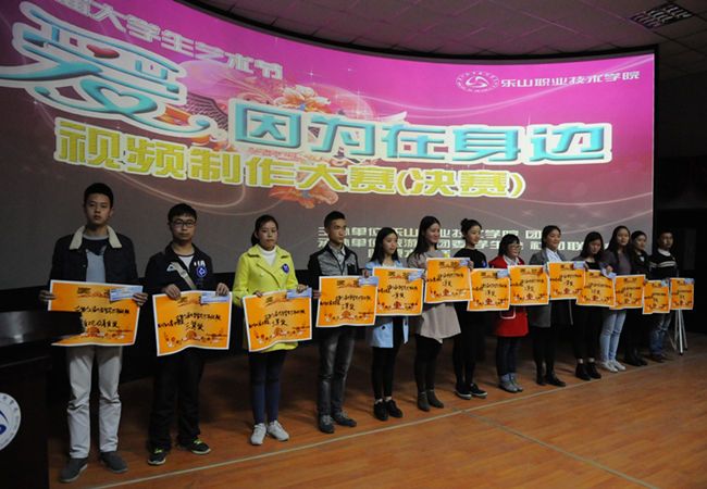 最后由评委宣布机电工程系《爱,在你的右手边》,旅游系《一直在你身边》获得本次视频制作大赛的一等奖。评委依次为获奖同学颁奖。