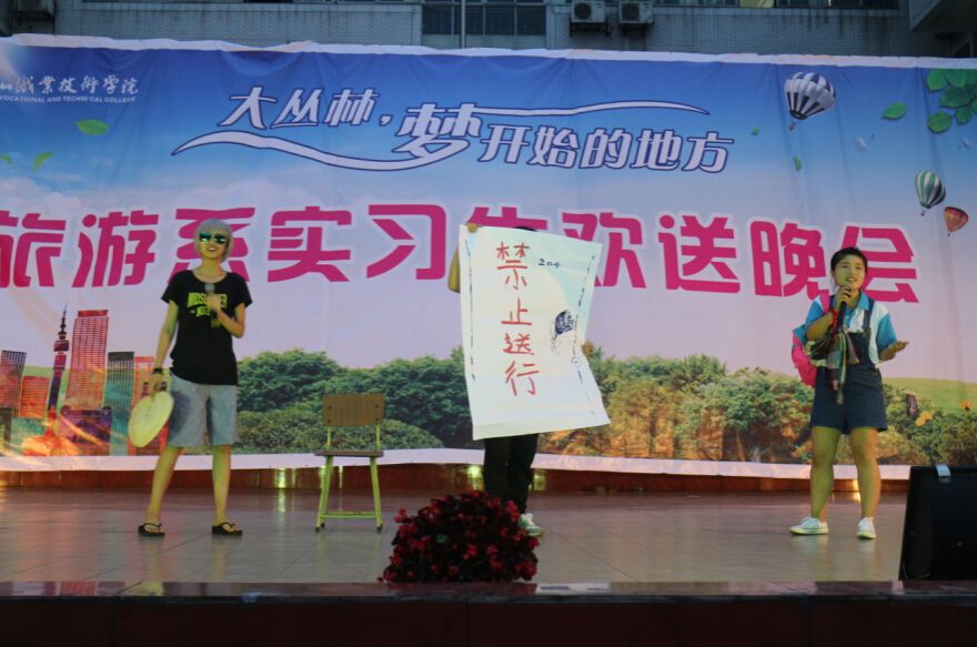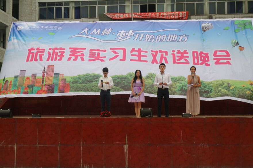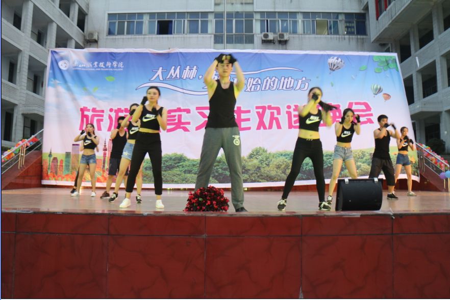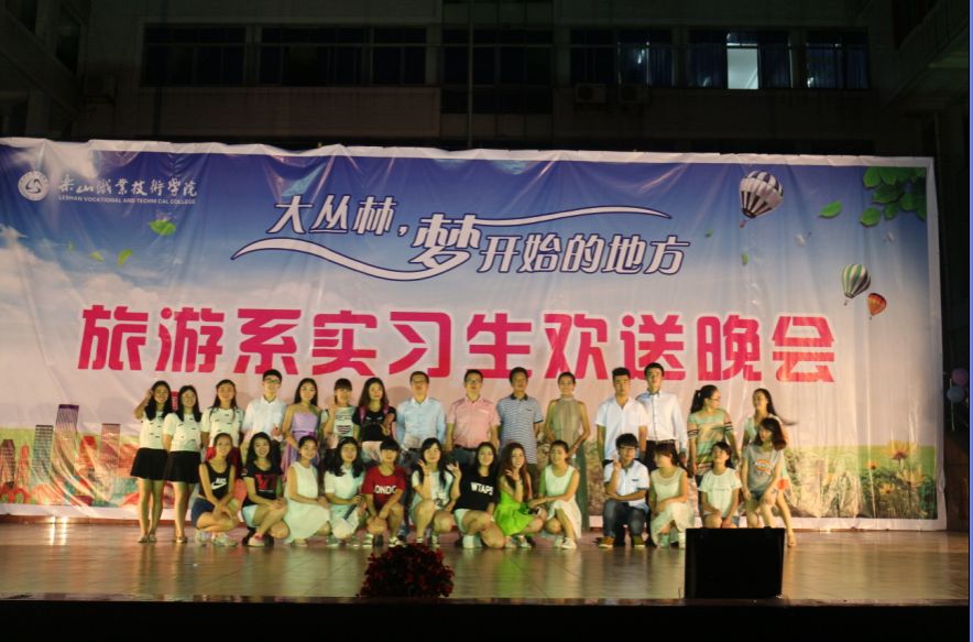 6月16日晚7点,旅游系在新村校区隆重举办了主题为“大丛林,梦开始的地方”的实习生欢送晚会。旅游系党总支书记李忠东、副主任黄剑波,副主任何加健及各班辅导员到场观看演出。