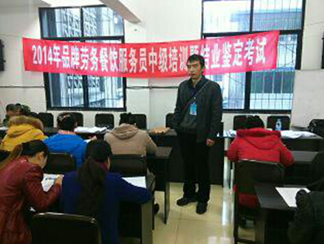 2014年11月26日上午9点30,五通桥区农民工中级餐厅服务员品牌培训鉴定工作在五通桥区举行。我院旅游系教师、四川省职业技能鉴定考评员刘海受五通桥区职业技能鉴定站邀请担任这次鉴定工作的考评员。