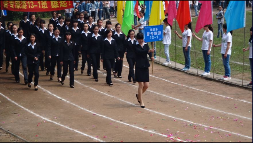 4月9日下午2.00,由旅游系承办的学院第十一届春季运动会新村赛区开幕式拉开了序幕。财经系,旅游系,电子信息系,机电工程系的学子们纷纷来这里集合,准备好了三天激烈的比赛与竞争。参加这次运动会开幕式的领导有学院副院长陈元进、刘忠及各系党总支书记和分管学生工作的副主任。