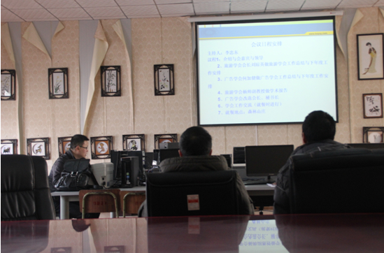 2014年1月17日上午,beat365亚洲版官网旅游学会和广告学会在旅游纪念品实训室召开了年度工作总结会。会议由旅游系书记李忠东主持,旅游学会会长刘琼英、广告学会会长何加健分别对两个学会2013年的工作做了总结,并对2014年的工作做了安排。旅游系杨帅老师就《2012年全国旅游院校基本情况》做了专题讲座。