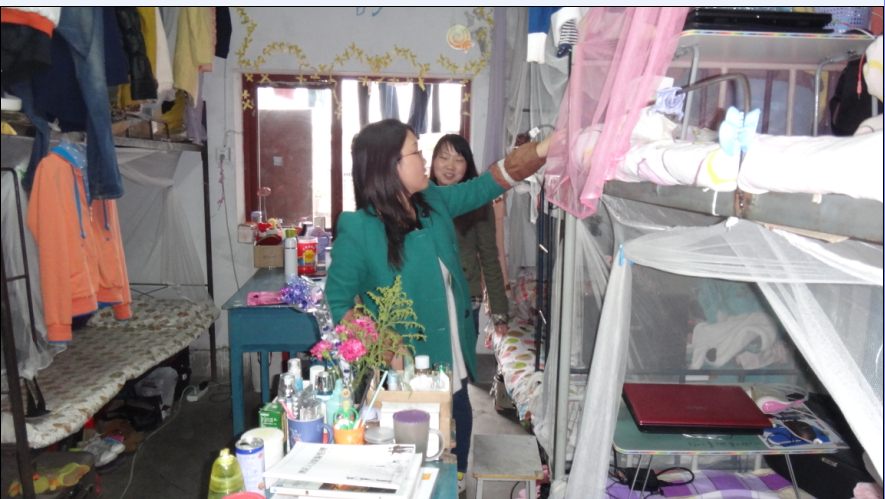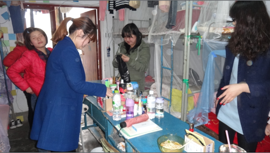 检查过程中老师还与学生亲切的交谈,告诉她们要注意开窗通风、保持个人卫生。检查顺利结束之后,同学们纷纷表示将更加注意身边的小事,做好安全防范工作,爱护自己的校园卫生,共同创造安全和谐的宿舍以及校园环境。