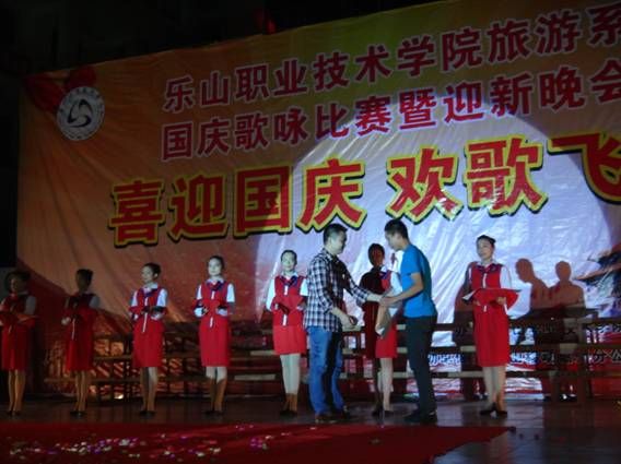 学工部部长张学河、副部长魏凡、旅游系李忠东书记、黄剑波副主任及何加健副主任到场担任评委。我系各班积极参与,《四渡赤水》、《爱我中华》、《我的中国心》等歌曲,表现出了同学们对祖国的热爱,也为祖国的生日献上最美的赞歌!