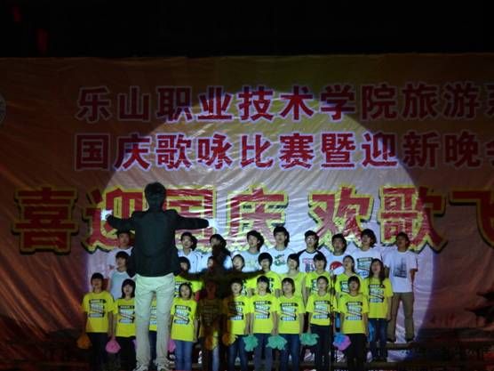 走进十月的阳光,我们迎来了祖国的生日。根据学院第九届大学生艺术节的安排,旅游系在2012年9月27日晚19:30举行了“喜迎国庆 欢歌飞扬”迎国庆歌咏比赛暨迎新晚会。同学们纵情歌唱,自豪的歌声在校园回荡。