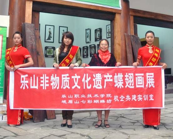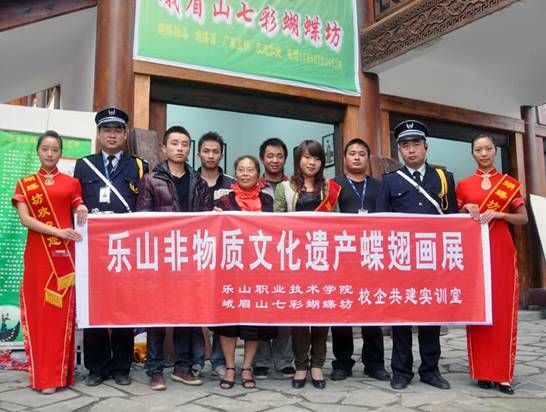 由四川省旅游协会、峨眉山市旅游局共同举办的“峨眉院子美食文化节”于10月1日—10月7日在峨眉如期举行,旅游系及其合作单位峨眉山七彩蝴蝶坊参与了本次活动,展示了校企合作共同拟开发的产品—乐山非物质文化遗产蝶翅画;很多游客对玲琅满目的蝶翅画表现出极大兴趣。