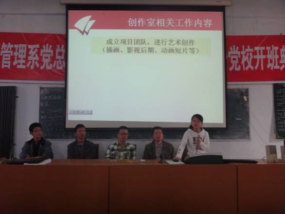 2012年10月26日中午13:00,旅游系召开了动画创作室成立大会,旅游系李忠东书记、何加健副主任、黄剑波副主任以及龚静老师、张雷老师参加了成立大会。