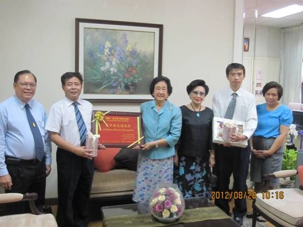 学习结束后,为了感谢泰国吉拉达学校,两名老师送了一个匾——“愿中泰友谊长存”给吉拉达学校。