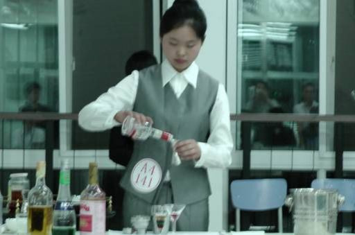 参赛选手刘玲在进行调酒比赛