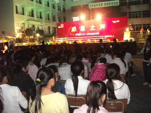 各班的同学依次登场演唱,一首首优美动听的歌曲唱出了同学们对和谐社会的热爱,对祖国的感激,对美好前程的憧憬。