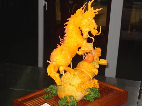 厨师们正在进行食品雕刻