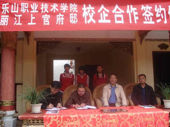与丽江上官府邸旅游文化有限公司陈建文经理签订校企合作协议