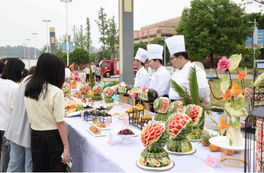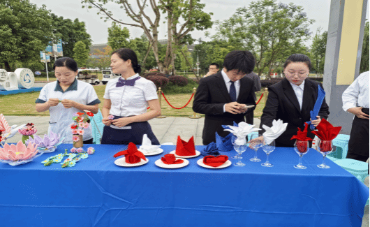 此次职业教育活动周,文化旅游学院专业师生团队积极准备,从谋划、制作到作品呈现历时半个月。启动仪式上,烹饪专业师生展示了精致的中式面点和水果雕刻作品,酒店管理与数字化运营学生在现场展示了精美的餐巾折花,吸引了大量观众驻足观看。此次专业成果展,展示出了学院的教学成果和学生良好的专业素养。