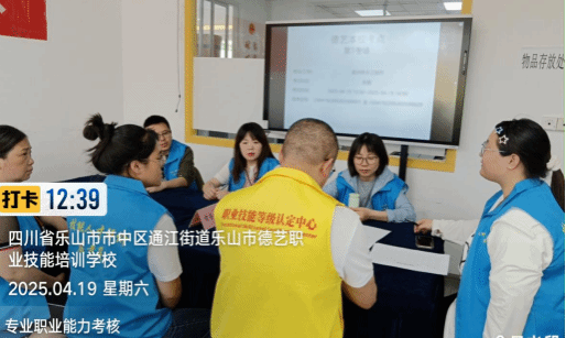 文化旅游学院黎芳、詹恒、范鸿雁三位教师应乐山市德艺职业技术培训学校邀请,于2025年4月19日下午开展“嘉州绣手工制作”专项职业能力考核的鉴定评审。
