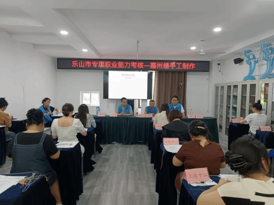 2025年8月16日,文化旅游学院教师马世新、詹恒应邀参加嘉州绣专项职业能力评审活动。嘉州绣是乐山市市级非物质文化遗产,首批“非遗四川・百城百艺”四川非遗品牌,也是蜀绣的主要分支。此次评审活动共有30名绣娘参加,通过职业能力评审认定,激励更多人学习嘉州绣,推动这项传统手工艺的传承。