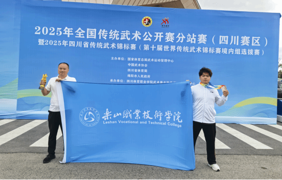 由国家体育总局武术运动管理中心、中国武术协会、四川省体育局、绵阳市人民政府主办,四川体育职业学院武术拳击跆拳道运动管理中心、四川省武术协会、绵阳市教体局、梓潼县人民政府承办的“七曲山杯”2025年全国传统武术公开赛分站赛(四川赛区)于2025年9月14日至18日在梓潼县体育中心隆重举行。我院学生武术队队员,旅游文化学院普专旅游管理25-2班黎洋铭同学不畏强手,勇于拼搏,获得男子C组地躺拳第二名(二等奖),男子C组其它长器械第七名(三等奖),代凌江老师获得优秀教练员称号。这是我院学子首次在全国传统武术比赛中获奖。