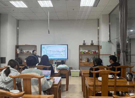 此次全国性赛事聚焦智慧文旅领域,对参赛学生的创新思维、专业实践能力与市场洞察力提出了极高要求。王钰副总经理凭借其在文化创意产业丰富的实战经验与深厚积淀,重点围绕“文创产品设计”与“PPT版式设计”两大关键环节,为同学们带来了极具针对性的辅导。在文创产品设计方面,她从市场趋势、文化内涵挖掘、创意转化、用户体验等维度,引导学生们深化设计理念,优化产品方案,使设计作品兼具地域特色、艺术美感与市场潜力。在PPT版式设计环节,王总则从逻辑架构、视觉呈现、信息传递效率及演讲辅助效果等方面,系统讲解了专业设计规范与技巧,助力同学们提升成果展示的专业度与吸引力。