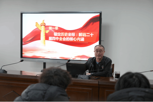 课程中,校长系统回顾了党的二十届四中全会召开的背景、重大意义及核心成果。他指出,2025年10月召开的党的二十届四中全会,是在“十四五”规划即将收官、“十五五”规划即将启幕的关键节点举行的一次具有里程碑意义的重要会议。全会审议通过的《中共中央关于制定国民经济和社会发展第十五个五年规划的建议》,擘画了未来五年国家发展的宏伟蓝图,是指导“十五五”时期各项工作的纲领性文件。