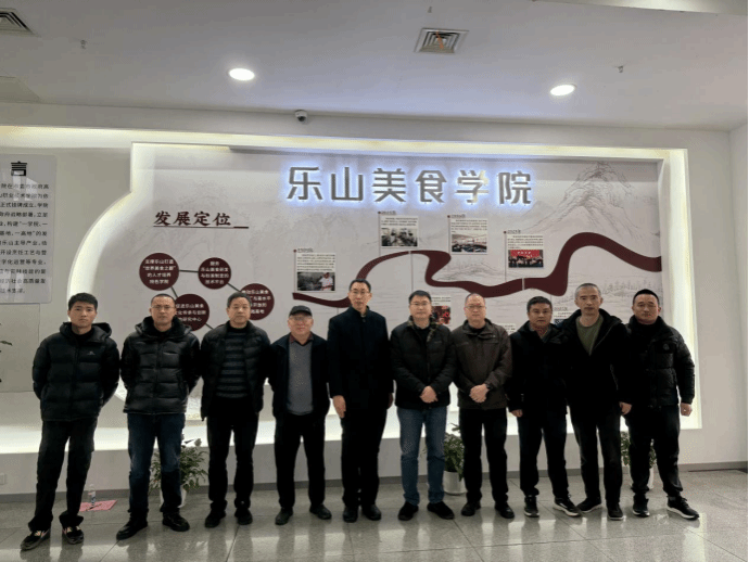 2025年12月24日,四川省成都市中和职业中学教务处副主任向超,烹饪专业部主任李波,专业教师李伟、谭成军一行四人来我院调研交流。文化旅游学院院长杨帅,烹饪工艺与营养专业负责人胡文才,专业教师刘海、刘向阳、廖庆才参加调研和交流会。