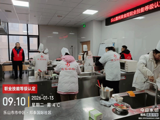 文化旅游学院刘海教师应乐山市嘉州美食文化研究院邀请,于2026年1月13日在乐山市嘉嫂培训学校,为乐山市嘉州美食文化研究院开展的“西式面点师五级”职业技能等级认定工作进行考评。