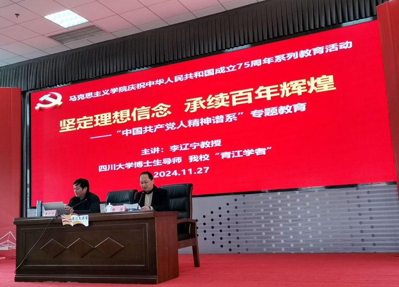 2024年11月27日下午,马克思主义学院在学术交流中心3004会议室举行中国共产党人精神谱系专题教育。本次活动由学校党委副书记张佳主持,邀请beat365“青江学者”、四川大学博士生导师李辽宁教授作报告,马克思主义学院思政课教师和各二级学院马列社团学生代表180余人参加。