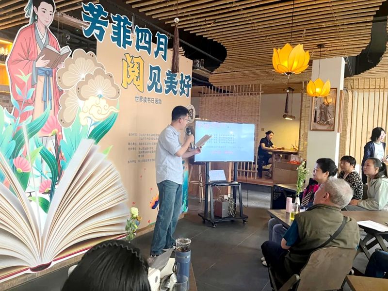 活动在经典诵读中拉开序幕,学校退休教师周晓红带领社区居民共同品读林徽因的《你是人间的四月天》,在诗意的语言中感受文学的魅力。在读书分享环节,马院教师陈嘉敖结合自身阅读经历,以《人生苦旅》一书为切入点,分享书中深刻的人生哲理,并联系现实生活,探讨如何在阅读中汲取智慧、感悟成长,引发了现场居民的强烈共鸣。