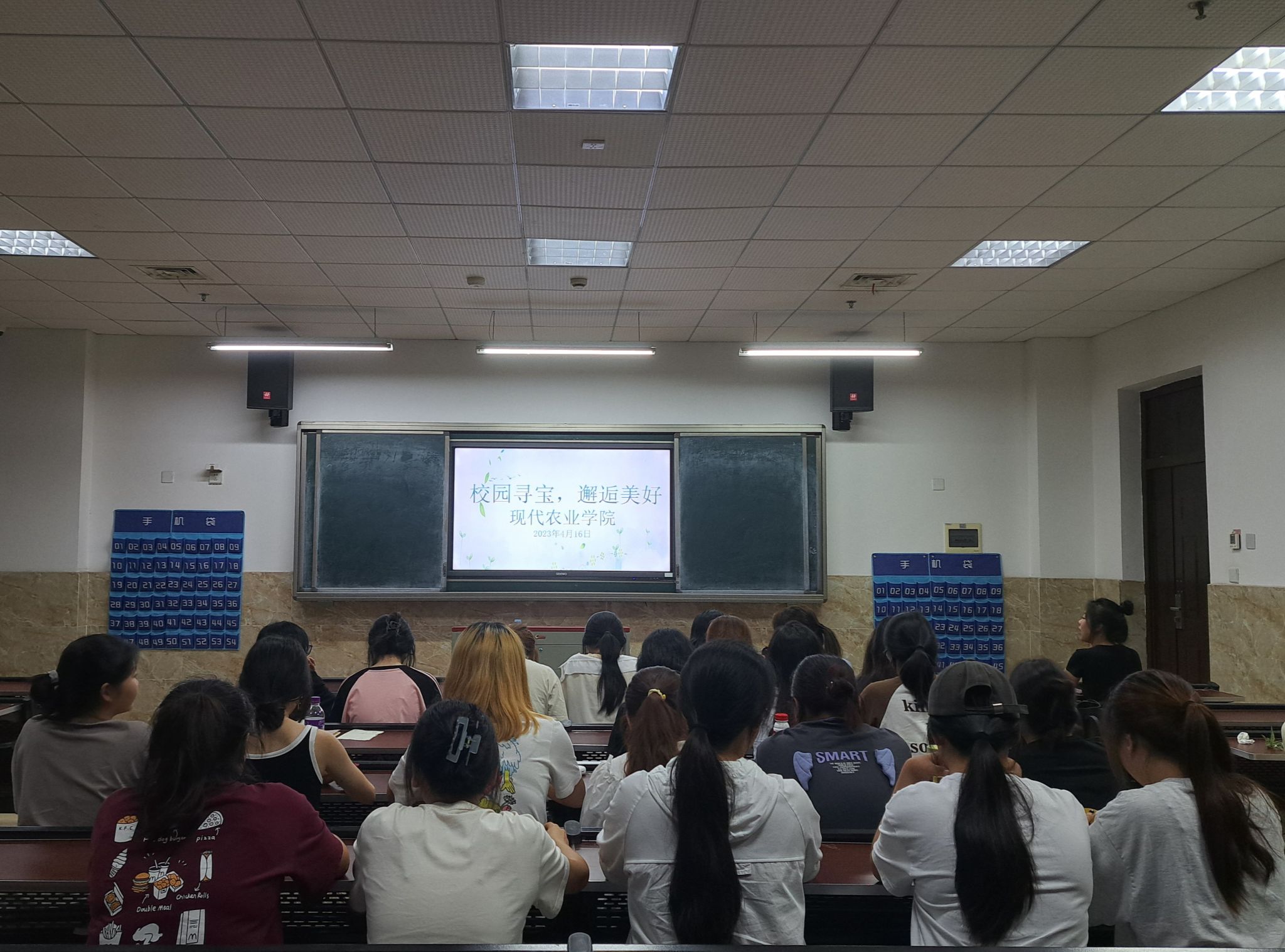 为让同学们感受自然美好,丰富校园生活,在校园中寻找美发现美,现代农业学院于4月16日在教学楼1B103开展“校园寻宝,邂逅美好”主题活动,现代农业学院37名同学参加本次活动。