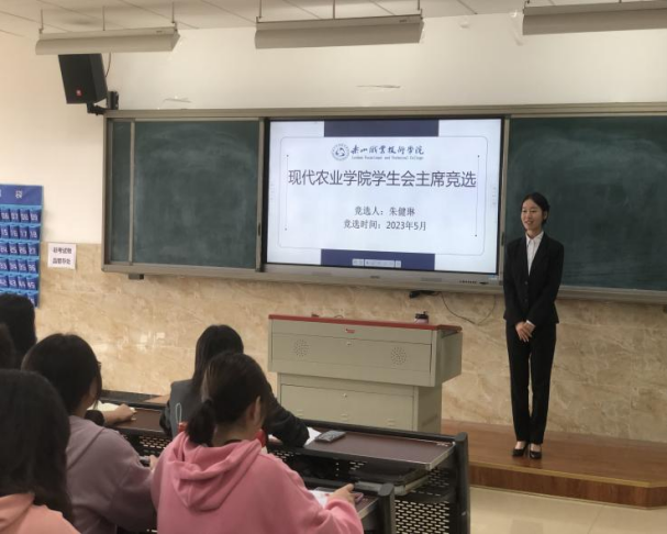 为了进一步加强我院团委、学生会队伍建设,充分发挥主席团的自主职能,培养新一批的学生干部,现代农业学院于2023年5月22日12:30在教学楼2c301召开现代农业学院学生干部换届竞选会。担任本次活动的评委有现代农业学院副书记、副院长(主持工作)鲜凌瑾,现代农业学院专职副书记宋建群,现代农业学院学生管理教师祝磊以及现任学生干部主席团成员和各部门部长。经过个人报名、资格审查、技能测试等多重筛选,朱健琳、喻垚雲、雷兴宇、萧依函共4名现代农业学院22级同学参加本次现场竞选,70余名现代农业学院学生代表参与观摩。