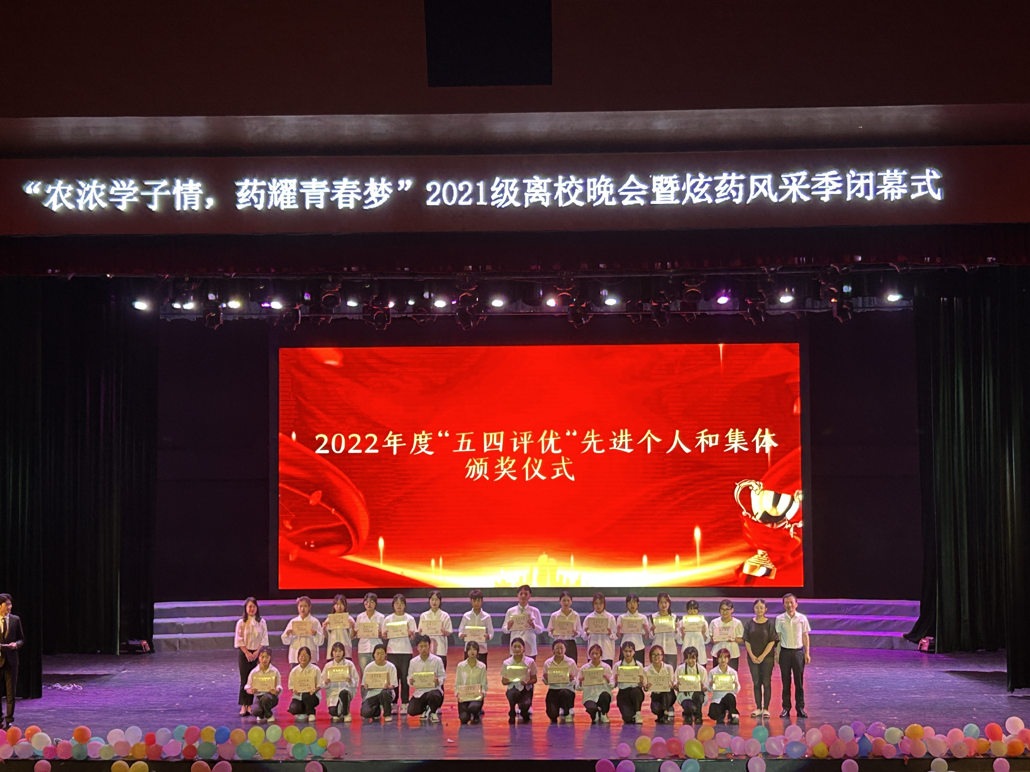 歌舞欣赏告一段落,进行了颁奖仪式,颁发2023年“高济海棠杯”炫“药”风采季技能比赛获奖证书及优秀学生干部聘书 、2022年度“五四评优”先进个人和集体获奖证书,为炫药风采季及本学期的各项学生活动拉下了圆满帷幕。