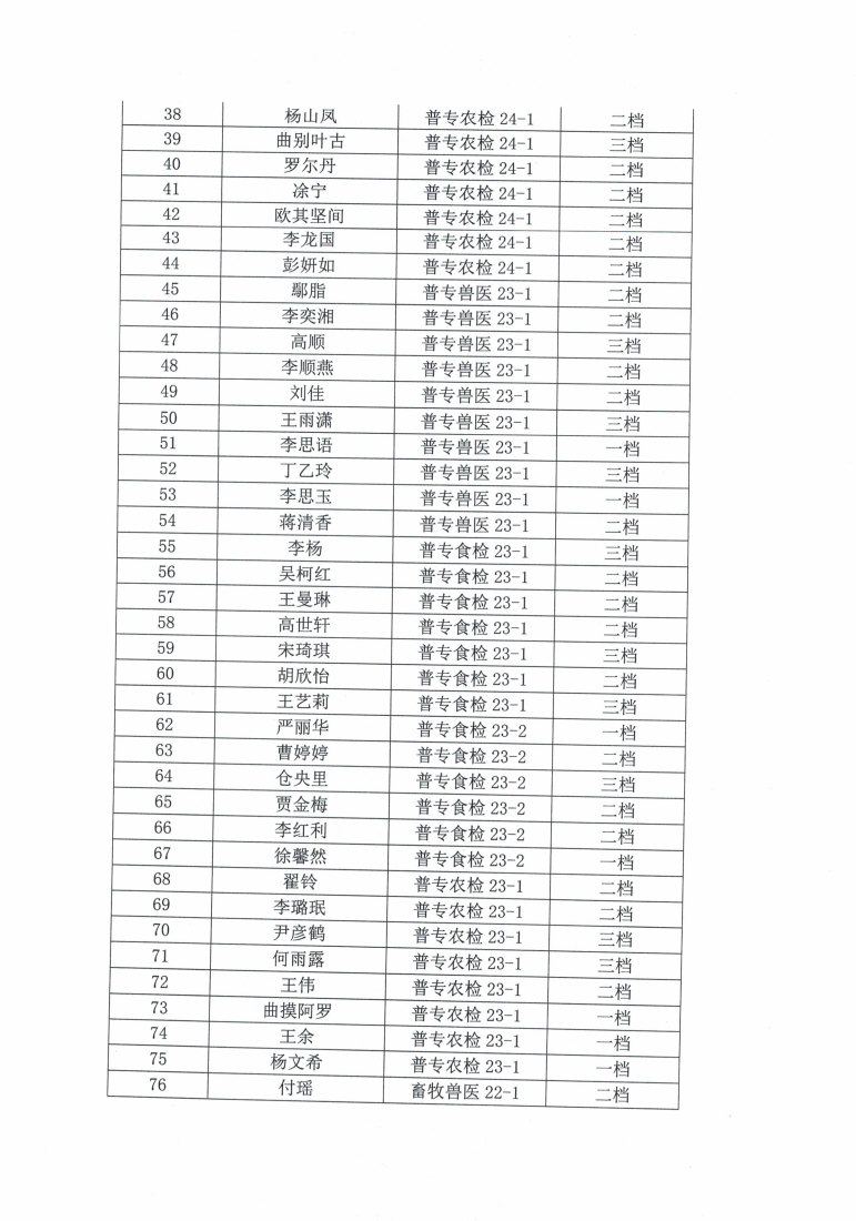 现代农业学院2023-2024学年度国家励志奖学金拟推荐名单公示