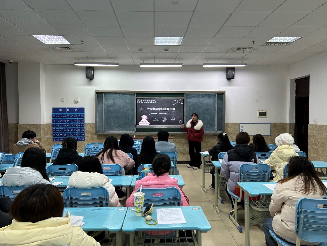 为了增强学生诚信意识,打造公平公正的考试环境,营造诚信考试的校园风气,现代农业学院于2024年12月29日19:00举办了以“严肃考风考纪”为主题的班会活动。此次活动由各班辅导员精心组织开展。