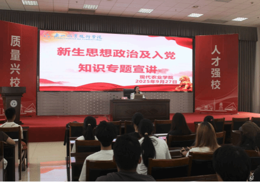 为加强新生思想政治引领,筑牢信仰根基,激励学子坚定理想信念、积极向党组织靠拢,2025年9月17日,现代农业学院成功举办“新生思想政治教育及入党知识专题宣讲”活动,为全体新生注入红色动力,凝聚奋进力量。