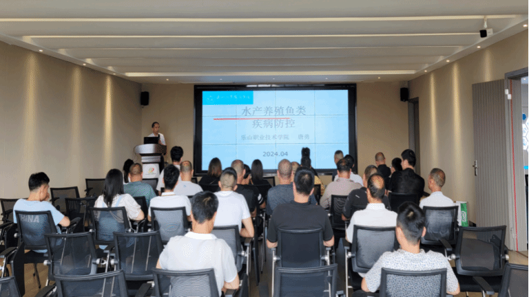 培训中,唐勇博士针对业主代表们关心的新品种养殖与养殖模式、常见疾病与防治进行了系统讲解,普及了药物防治水产动物疾病的相关知识。同时,结合井研县水产养殖实际,就如何发挥水产博士工作站引领作用,持续改进综合措施、加强环境保护、推进水产养殖转型升级等方面与业主们进行了充分探讨。