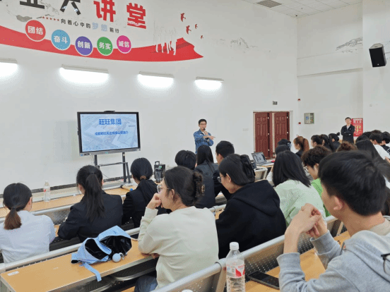 巨星农牧有限公司宣讲人从企业发展历程、职业发展规划、福利待遇体系和招聘计划等多个维度,为同学们呈现了全面充满活力的企业形象。针对同学们的职业规划和岗位咨询,人事专员在互动环节细致耐心解答了同学们的疑问,让同学们对未来实习和工作有了更清晰的认识。