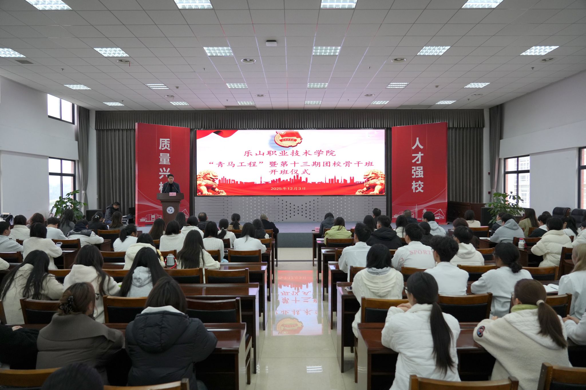 为深入学习贯彻党的最新理论成果,加强青年思想政治引领,着力为党培养和输送青年政治骨干,2025年12月3日,学校“青年马克思主义者培养工程”暨第十三期团校骨干班开班仪式在学术交流中心举行。校党委委员、副校长张学河出席仪式,相关职能部门负责人、各二级学院党团负责同志及全体学员参加。仪式由校团委副书记罗贤主持。