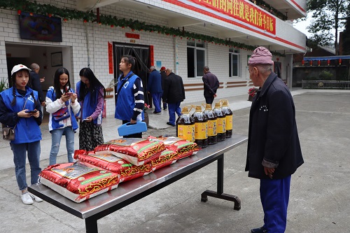 中午14:20时,党员同志和志愿者们一到目的地就忙碌起来,给福利院老人送上香香的大米和菜油。当看到满载着关心和幸福的大米和菜油时,福利院的老人们说着感激的话语,“谢谢你们来看望我们,给我们送来温暖和爱心。”