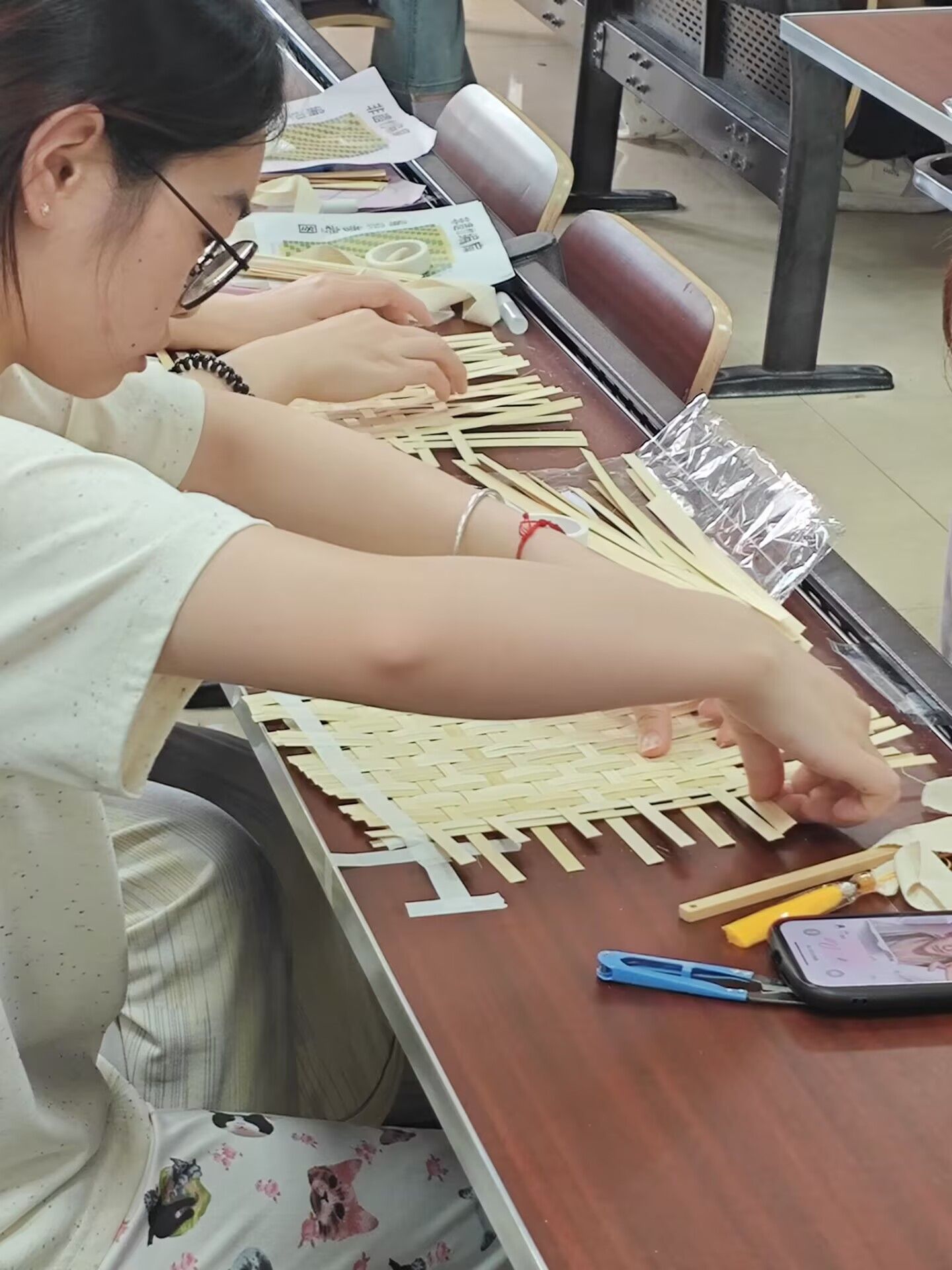 当一把把精美的竹编扇子制作完成,同学们纷纷拿起手机,拍下自己作品的照片,并上传到QQ动态,配上“传扇文化,体验竹编之美”的文字。这一环节不仅让同学们将自己对竹编艺术的理解和感悟分享给更多的人,更进一步增强了他们对传统文化的认同感和自豪感。